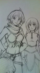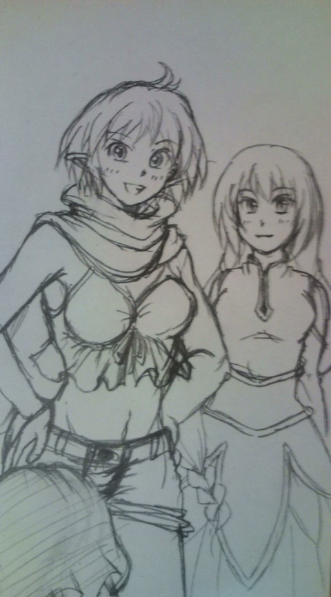 2010/04/26 Category : 携帯から 携帯から ちょっとアナログで遊んでました。以前参加していた、定期ゲの自キャラです。一番愛着のあるキャラなんで引退してからも、たまに思い出します。でも、描くのは久しぶり。彼女らの下にいるケツはキッドさんなのですが少々けしからん構図なんでアップしません(笑先週、サイト更新しましたがギャラリー・・・見づらくないだろうか;もし、見られないなどあれば拍手などでお気軽にご指摘ください。web拍手、ポチポチっとありがとうございました!感謝です( ´∀`)