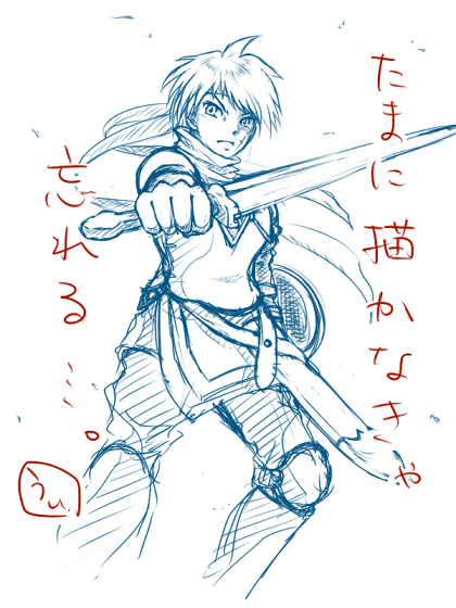 2010/03/02 Category : クロノクロス らくがクロス どうしても中性っぽくしか描けなくて困る。 ・・・中性にもなってないか(笑 別作業中の息抜きに、らくがグレン。 ここのところ、描くキャラが偏ってたんで ちょっと落書き程度に・・・と思ったけど、やっぱこれ清書したいw (近いうちに・・・。) 2頭身でもよかったけど、それだと練習にならないような気がして(∋ω∈) web拍手、ポチポチっとありがとうございました! そして私信! こちらこそニコタ、ありがとうございました(´∀`*) 別所では引き続きヨロシクですw しかし、大量アイテムふいたwwwwwwwww