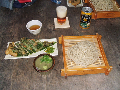 2008/05/08 Category : アウトドア関連 GWでした。 4月末から、4連休→3日通常→5連休でした。 それなりに予定が入ってて、ちょい充実したかな? とはいえ、最初の4連休は相方充電と 後の5連休用の準備買い物で終わりましたがw 3日通常はフツーに。 しかし、さすがに帰宅時間が早くてネットに出られる時間が 限られてたな; 5連休に予定が2つ 1つめは若狭方面へ海釣り。 何を狙うことなく、1日糸を垂れて過ごしました。 釣果はメバル2・アジ3・グレ2 メバルは寄ってきたネコに贈呈。 お魚くわえたネコ初めて見た・・・本当に食うんだね、生魚。 アジは1匹スカリ(生かすために、海に浮かべておく網)から いつのまにか逃げられてた; グレはお持ち帰り。しかしあまり好きじゃないし、ウマくないし。 2つめはキャンプと渓流釣り ウチは釣りがないと生きていけないのか(笑 毎度の長野県某所で、サイト借りてキャンプ。 近場の自然湖で毎度のニジマス50cm狙い。 あいにくの雨模様でしたが、小雨程度だったので 気にせずいつものように糸垂れてましたら きたよきたよ、ニジマス45cm程のが! 1度目は糸切られ、2度目でウマくかかったw 慎重に竿をさばく相方、あわてて網を車に取りにいく私。 そうこうしているうちに、雨がひどくなってきた;; そしてGWだった為、ギャラリーもいつもより多くて ものっそい賑やかw 周りが見守る中、結局網の調子が悪かったのと 湖に架かる橋の上から釣ってたんで、竿を私に預け 泣く泣く相方が崖を下りて捕獲するハメにw カサもささずにおぼつかない手(川釣りはまだ初心者です)で竿を持ってたら ギャラリーのうちお一方が、私にカサをさしてくださり とてもありがたかったです(´∀`*) その方の旦那様も渓流釣りするらしく、エサの話などしながら 下りる相方を見守る。 岸へつき、暴れるニジマスと格闘。 コレが結構、最後の最後まで何とか逃げようとするから 暴れまくるんですよw 若干弱り、やっと口元をつかむぞってところで・・・・・・・・・・・・ \(^o^)/ またしても糸切られちゃったwww 落胆する相方と私、そして一部始終を見守っていたギャラリーの方々・・・ というか、もう口元じゃないかってところでバラすなんて 恥ずかしすぎるwww 特にカサをさしてくれた上、次の仕掛けを投げるまで 付き合ってくださったご夫婦には、ホント申し訳ない; 結局その後は何も来ず。諦めて昼食をとりに近場の蕎麦屋へ。 ココのはホントうまいw こんな感じで定食になってます。 左から、タケノコの天ぷらフキ味噌のせ よもぎとちくわのかき揚げ、葉わさびのオリーブ油あえ、菜の花のおひたし そして蕎麦。地元のそば粉を使い、その場で打ってくれるんでホントうまい。 地ビールもいただいたwフルーツっぽい香りがしておいしかった。 数年前まで蕎麦だけでしたが、観光客が増えメニューを少しずつ変えてるみたい。 いただいた後、キャンプ場へ。 そのキャンプでもちょっとした事件が・・・w 長いんで、続きは後ほど;;
